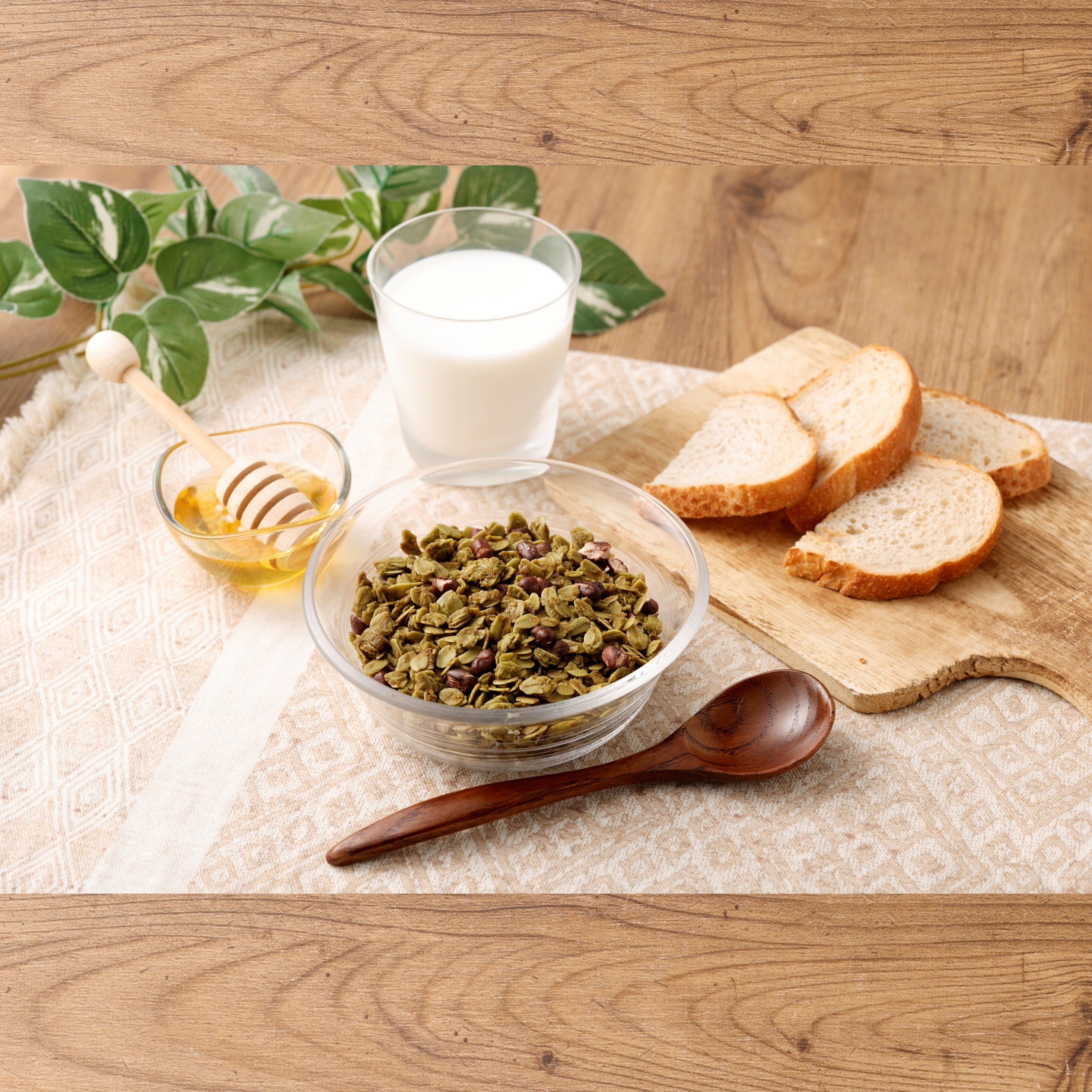 有機オーツ麦、有機ココナッツオイル、有機メープルシロップ、竹パウダー(国産)、ドライ小豆、ビートオリゴ糖(国産)、抹茶粉(国産)、ビートグラニュー糖(国産)、海塩(国産)